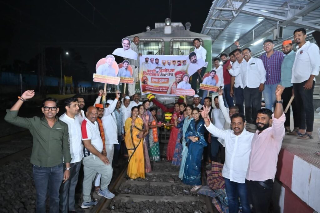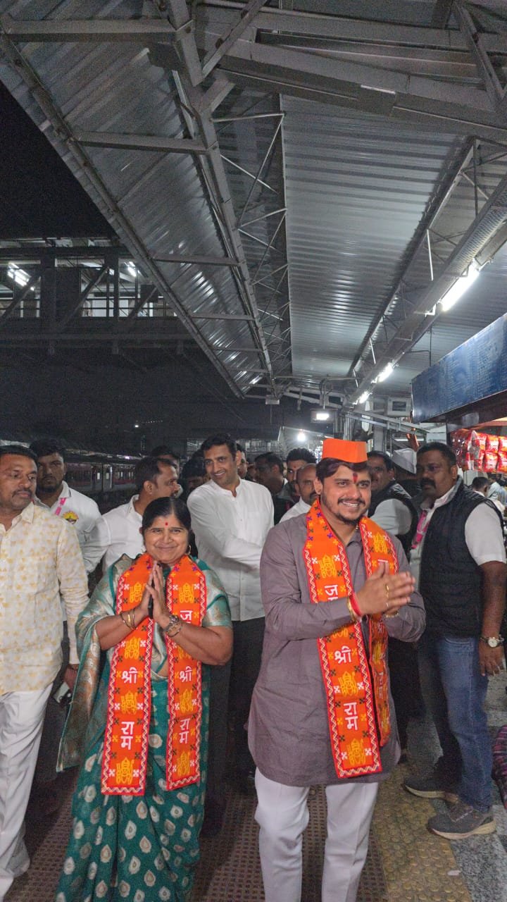 स्टेशन परिसर भगव्या पताका, दीपमाळा, हार आणि फटाक्यांच्या रोषणाईने उजळून गेला. डब्यांमधूनही “जय श्रीराम” चे निनाद ऐकू येत होते.